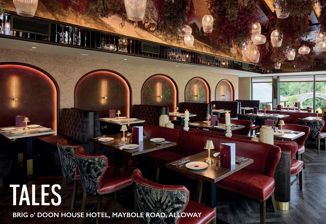 Tales officially opened at the start of June and is now welcoming guests seven days a week from noon until 10pm. The offering focuses on seasonal Scottish cuisine and is framed by sweeping, magnetic views of the iconic River Doon and the gardens below.